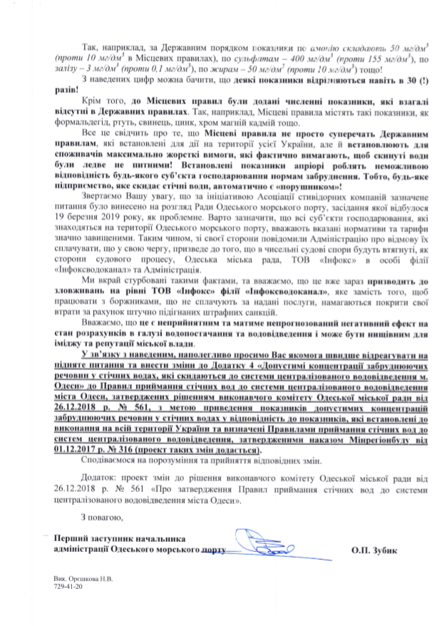В частности, стивидоры жалуются на то, что переход на новые условия был осуществлен без каких-либо предупреждений. В связи с этим у предприятий просто нет времени на то, чтобы привести свои показатели к нормам. Вместо этого уже с начала 2019 года "Инфоксводоканал" начал проверять стоковые воды и штрафовать предпринимателей.