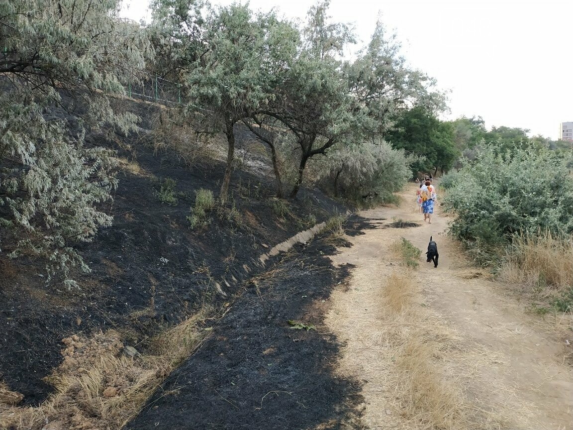 Возле стройки на 14-ой станции Большого Фонтана вечером 2 августа выгорел склон.