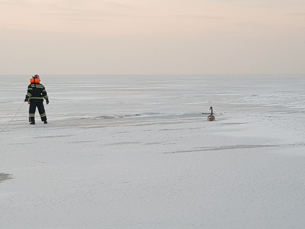Днем, 18 января, в Службу спасения «101» в 15:58 поступило сообщение о том, что в Одесской области, в поселке городского типа Овидиополь на побережье Днестровского лимана, нужна помочь лебедю выбраться из ледяной лунки.