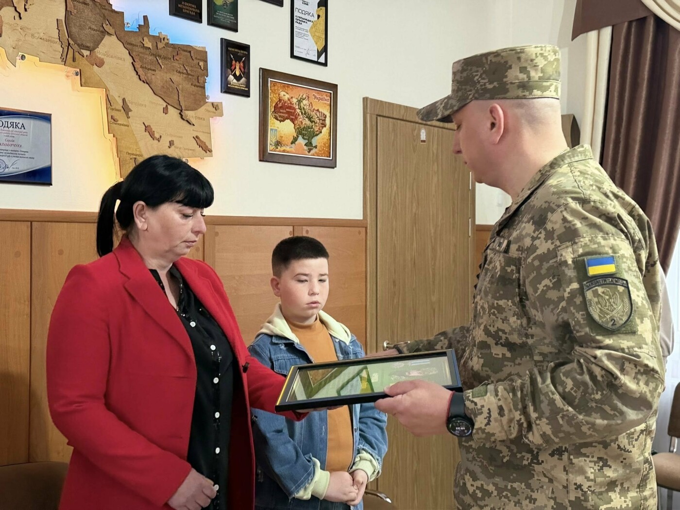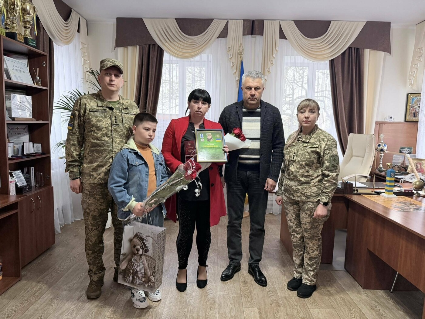 У місті Подільськ представники Державної прикордонної служби передали відзнаку родині загиблого військового. Нагороду отримали дружина Інна та син Олександр.