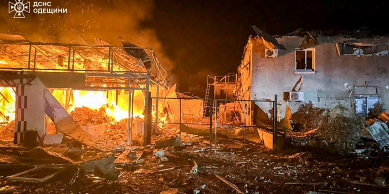 Ввечері росіяни атакували Одещину дронами та ракетами. Внаслідок ударів є руйнування, жертва та поранені. З вогнем боролись рятувальники. У пресслужбі ДСНС повідомили, що внаслідок вечірньої атаки сталася пожежа у п’яти торгових кіосках, яку рятувальники швидко загасили. Було пошкоджено будівлі готелю, Укрпошти, Укртелекому, будинку культури, центру надання адміністративних послуг і кілька автомобілів. "На жаль, загинула одна жінка. За попередньою інформац...