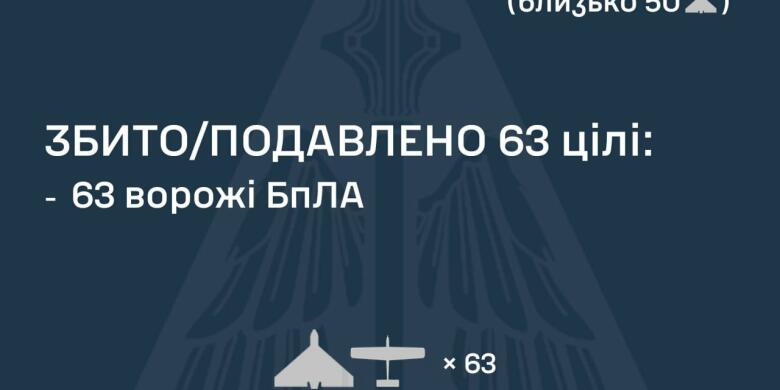 Сили оборони знешкодили 63 безпілотники з 72, якими російські війська атакували Україну з вечора 27 листопада. У п'яти локаціях зафіксовані влучання балістичної ракети "Іскандер-М" та дев'яти ударних БПЛА, ще в одній - падіння уламків збитих цілей. Як повідомили Повітряні сили ЗСУ в Telegram, з 18:00 четверга 27 листопада російські загарбники випустили по Україні одну балістичну ракету "Іскандер-М" із тимчасово окупованого Криму та 72 безпілотники. Серед н...