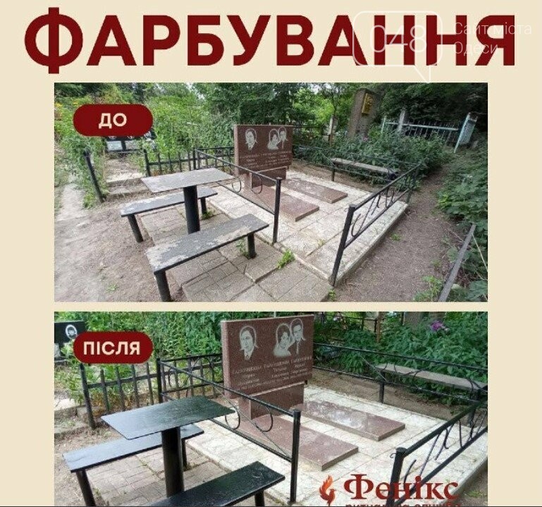 Ритуальная служба "Феникс" предлагает уборку могил, регулярный уход за захоронениями и реставрацию надгробных сооружений в г. Одесса и пригороде.