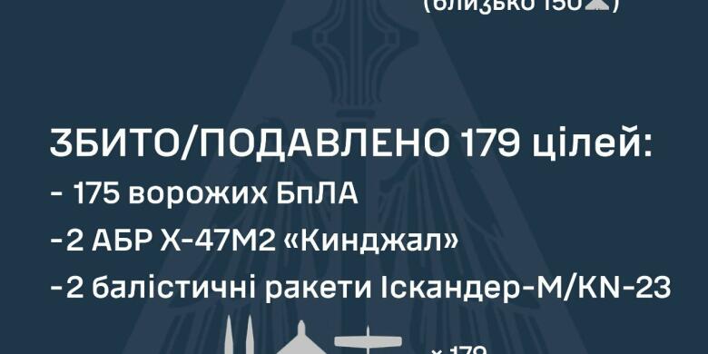 Ночью на 7 декабря Россия атаковала Украину 241 дроном и 5 баллистическими ракетами, Воздушные силы сбили или подавили 179 целей - 175 дронов и 4 ракеты. Зафиксировано попадание 65 ударных БПЛА в 14 локациях по территории страны, атака продолжается, в воздушном пространстве остаются вражеские дроны. Как сообщили Воздушные силы ВСУ, с 18:00 6 декабря противник нанес комбинированный удар по объектам критической инфраструктуры Украины с применением ударных БП...